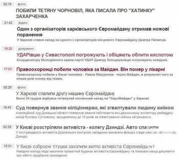 За останній тиждень сталося кілька пригод, в результаті яких постраждали активісти Євромайдану. У неділю стріляли в активіста Дорожнього контролю Володимира Маралова. Увечері у вівторок у Харкові один з організаторів місцевого Євромайдану Дмитро Пилипець отримав кілька ножових поранень.