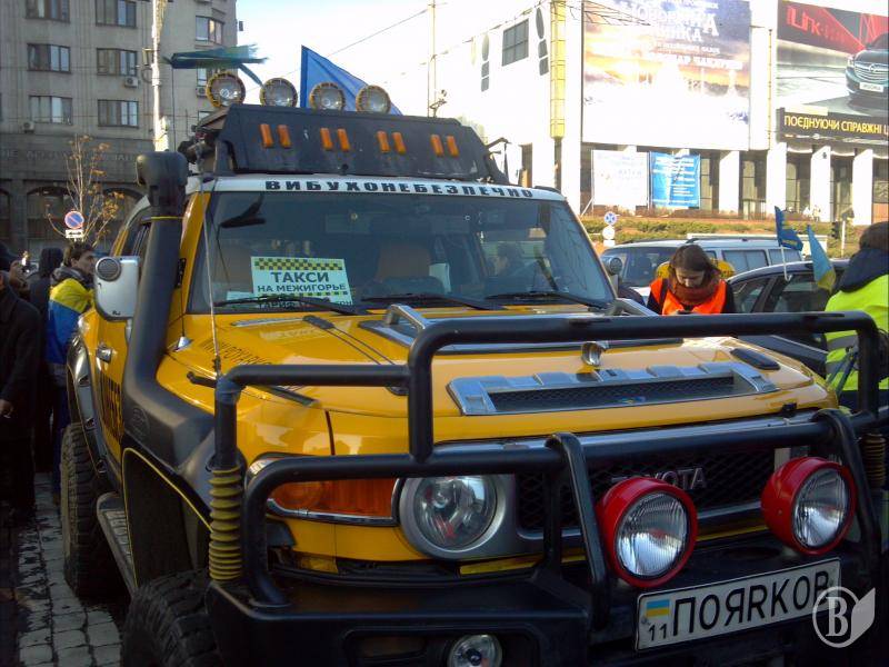 Разом з учасниками автопробігу до Межигір’я вирушила порожня труна із жалобними стрічками.