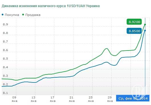 Население Украины уже смирилось с тем, что доллар будет стоит 9 гривен.