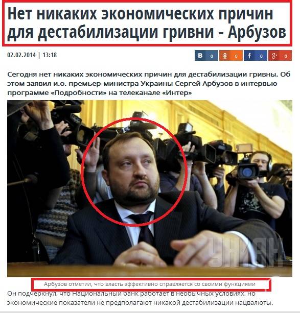 И дальше они рассказывают, что девальвация произошла по вине людей, которые в центре Киева борются за свои гражданские права.