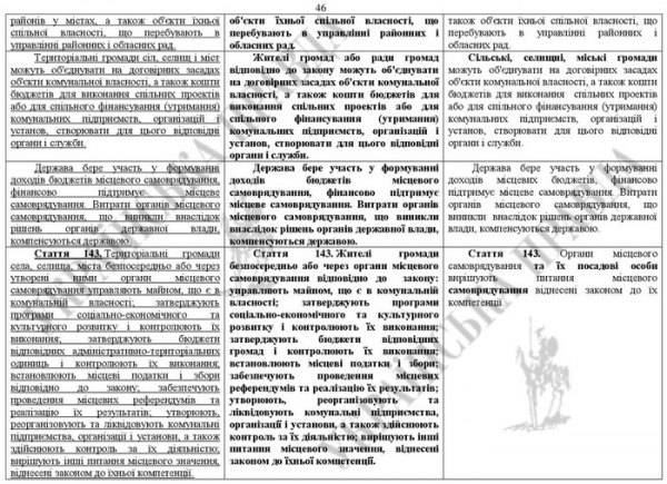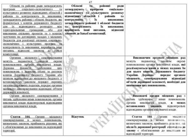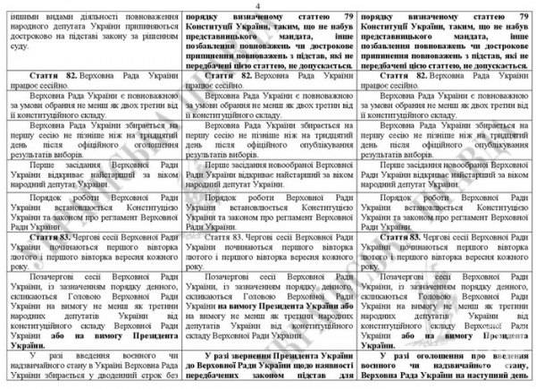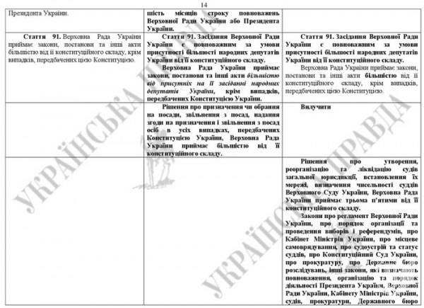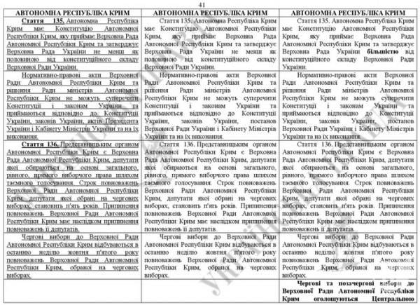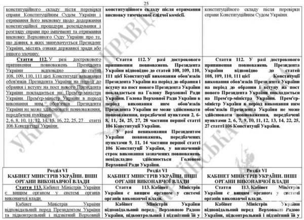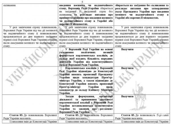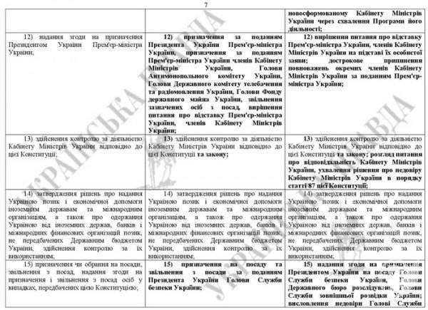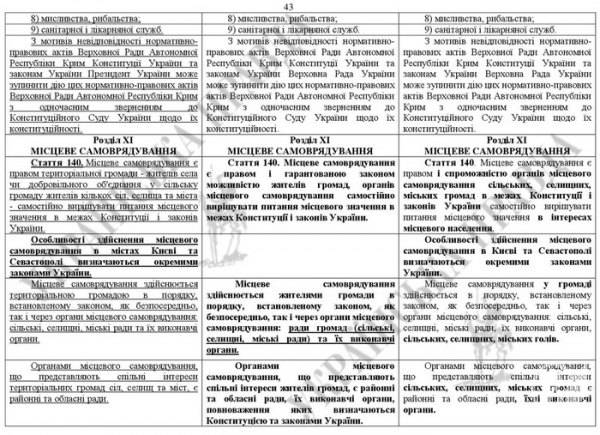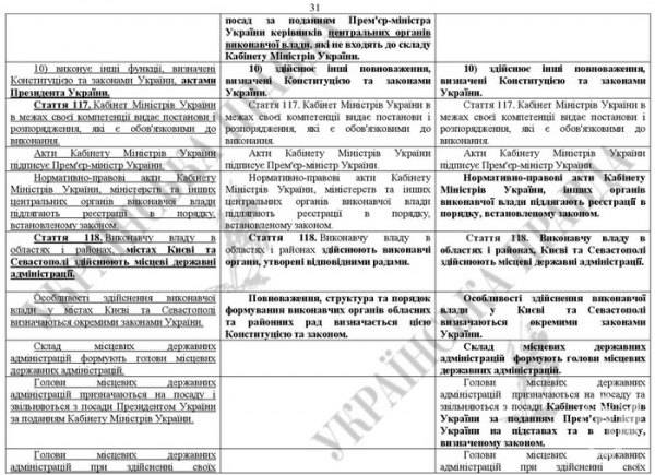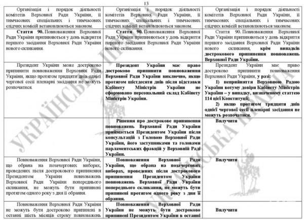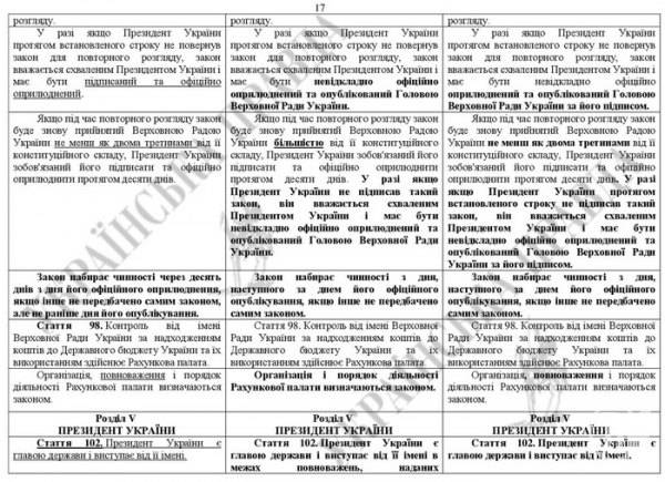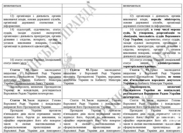 В розпорядження "Української правди" опинилась повна порівняльная таблиція змін до Конституції, запропоновані фракціями Батьківщина та УДАР.