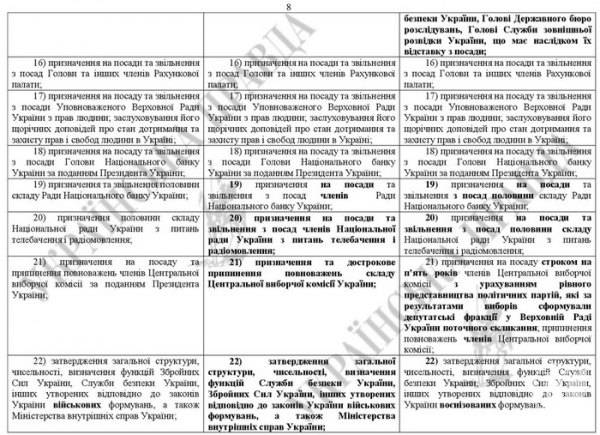 В той же час юристи УДАРу пропонують позбавити президента призначати чергові та позачергові вибори Верховної ради і передати цю функцію Центральній виборчій комісії.