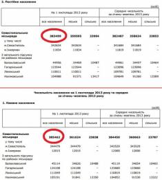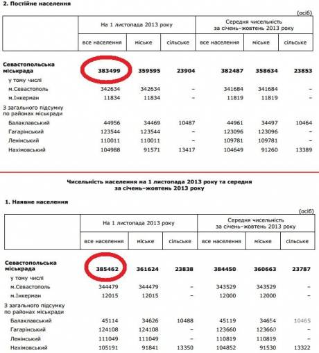 Однако состоянием на 1 ноября 2013 года, согласно данным Управления статистики в Севастополе, все постоянное население города – 383 499 людей, а присутствуют на тот момент – 385 462 лица.