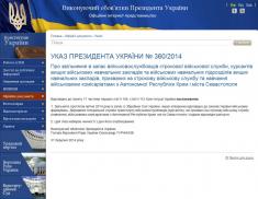 Виконуючий обов’язки Президента України, Голова Верховної Ради України Олександр Турчинов 31 березня підписав Указ №360/2014 про звільнення в запас військовослужбовців строкової військової служби, курсантів вищих ВНЗ та військових навчальних підрозділів вищих навчальних закладів, призваних на строкову військову службу та навчання військовими комісаріатами з АР Крим і міста Севастополь.