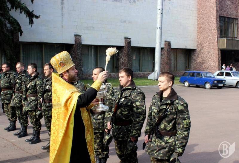В конце торжественной части настоятель Храма Святого Архистратига Михаила протоиерей Иван Ярема традиционно освятили военнослужащих и благословил их на военное дело.
