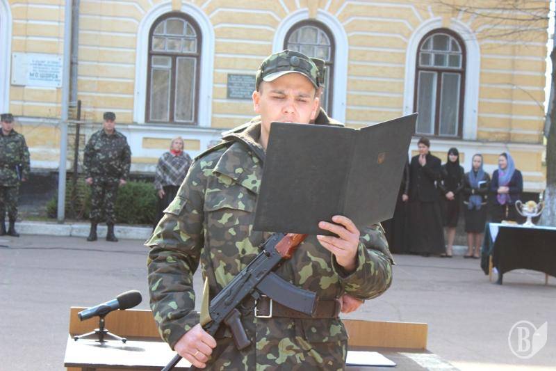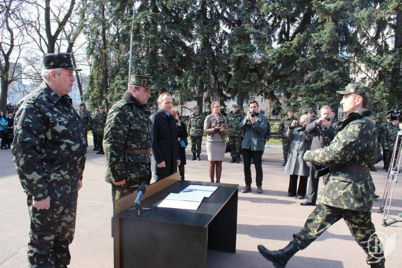 В Чернигове, под лозунгом - «Мы будем защищать свою Родину» - состоялось принятие Военной присяги гражданами Украины, которые добровольно решили стать на защиту своей Родины.