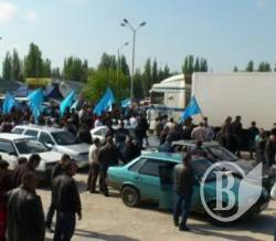 Колонна из тысячи автомобилей с крымскотатарскими флагами высунулась к блок-посту в Армянск, чтобы встретить лидера крымскотатарского народа, народного депутата Украины Мустафу Джемилева, который возвращается на автомобиле из Киева в Крым.