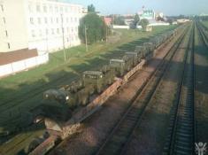 "В республике Беларусь, в город Гомель на железнодорожную станцию «Северный» вчера прибыл русский военный эшелон в составе 65 платформ с самоходными минометными установками", - информируют в ведомстве.