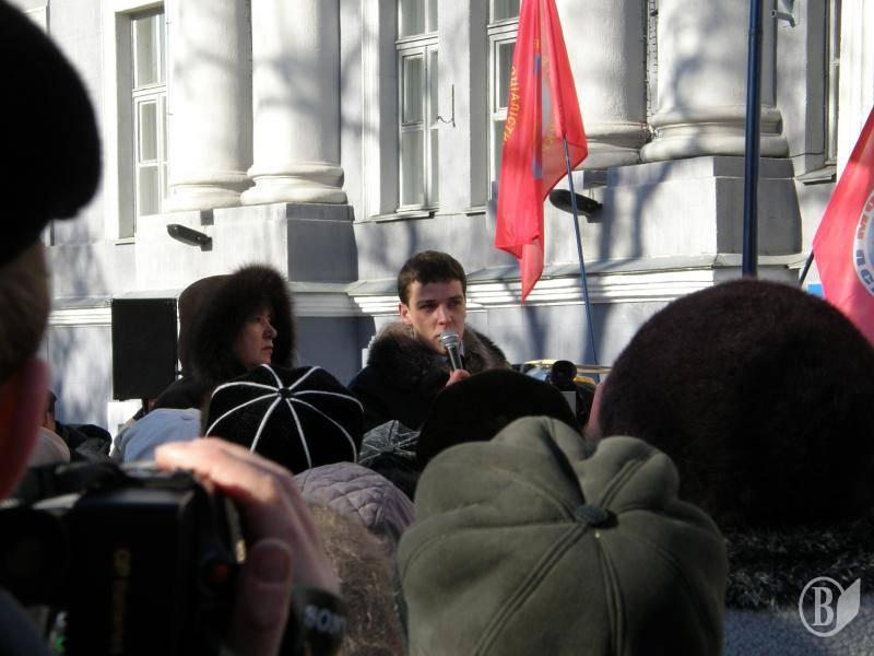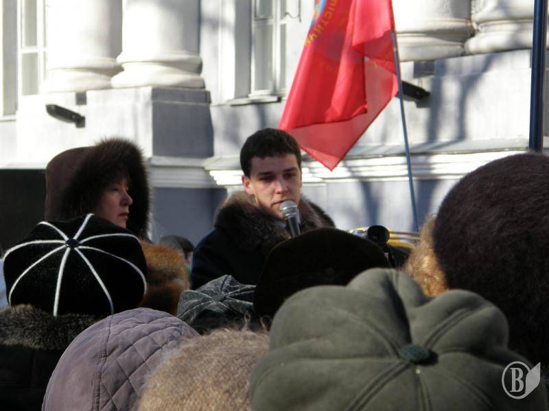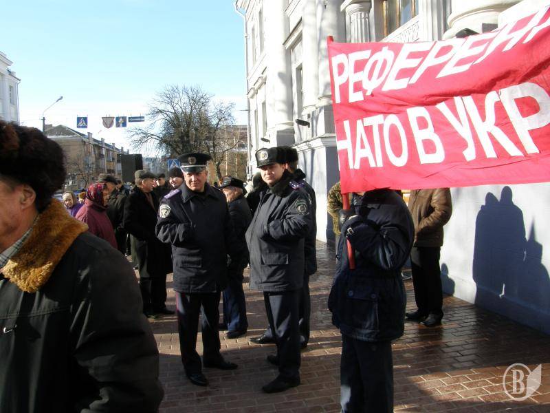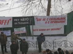 На фото: Наталя Вітренко під час виступів у Чернігові проти НАТО 20 лютого 2008 року.
