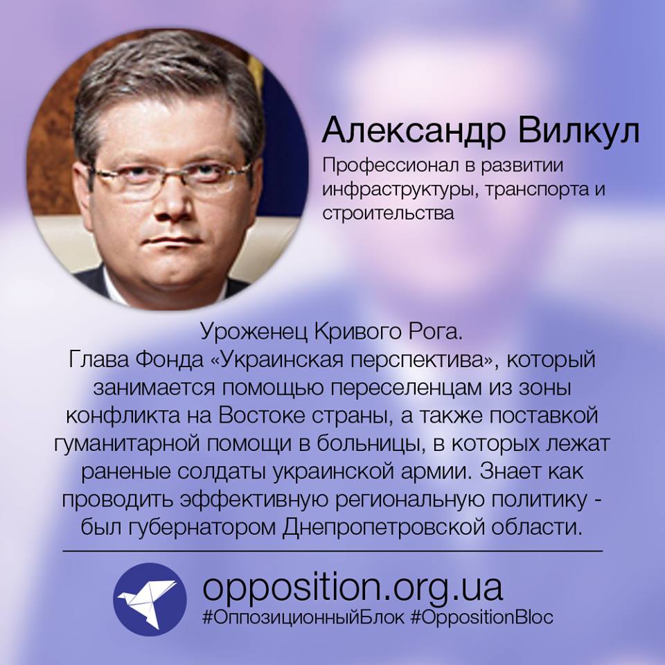 «Дії нашої політичної сили, Опозиційного блоку, спрямовані на забезпечення миру та підтримки вітчизняного виробництва, створення нових робочих місць із високою заробітною платою та підвищення соціальних стандартів», — заявив цього тижня один з лідерів Опозиційного блоку Олександр Вілкул на зустрічі з депутатами Європейського парламенту. — «Нинішня влада не в змозі забезпечити розвиток України. Зміни здатні забезпечити тільки кваліфіковані державні менеджери, які мають досвід реалізації проектів на обласному та державному рівнях».