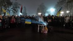 С лампадками и свечами, цветами, национальными флагами и плакатами с надписью «Герои не умирают» пришли сегодня черниговцы в сквер имени Попудренко.
