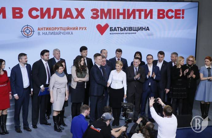 12 лютого в Українському домі лідер «Батьківщина» Юлія Тимошенко та голова «Антикорупційного руху» Валентин Наливайченко виголосили спільний Заклик до нації.