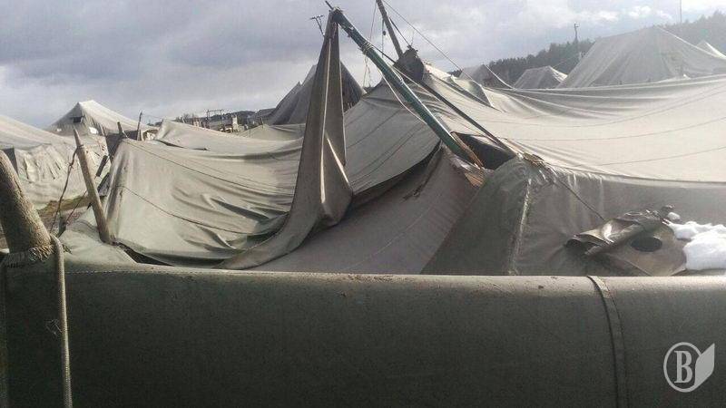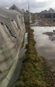 Нагадаємо: там, у «Гондурасі», як його іноді називають (мабуть не лише через певну співзвучність) намети для військових, що мають взяти участь у навчаннях, пошкоджені та стоять у болоті.