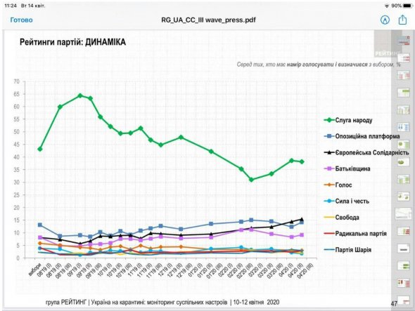 Як свідчать дані опитування соціологічної групи "Рейтинг", партія "Європейська Солідарність" стрімко нарощує рейтинг, натомість "Слуга народу" втрачає популярність серед громадян України.