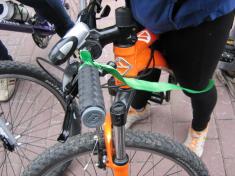 Люди продовжували «стягуватися». Оргкомітет почав роздавати зелені стрічки (символи Чернігівського велодня), яскраві жилети (які люб’язно надав один з учасників) та символічні знаки (білі прапорці із зеленою емблемою – людина, що тримає велосипед над головою), які також виготовили самотужки.