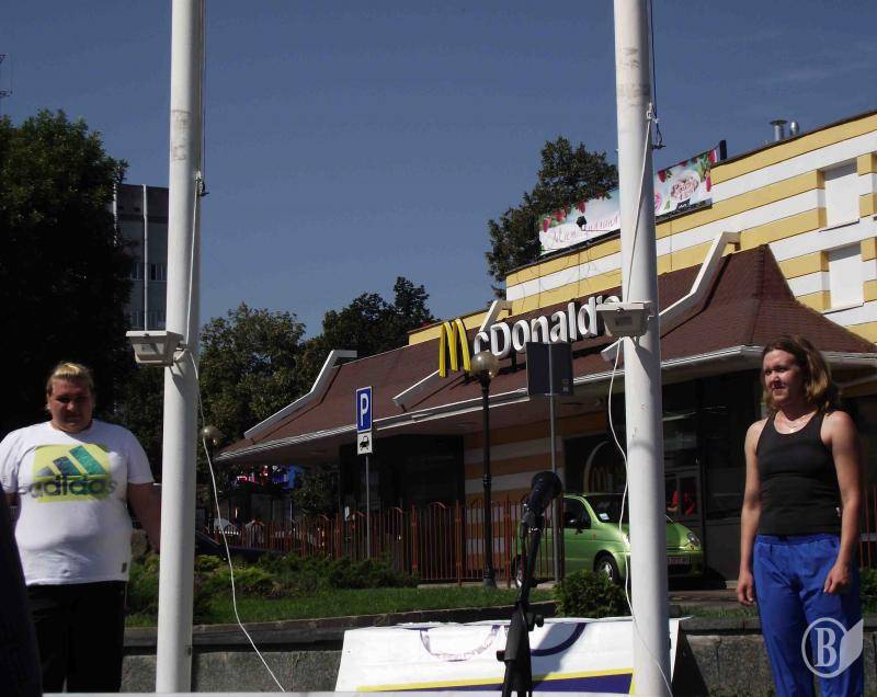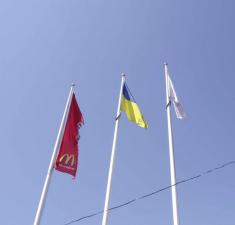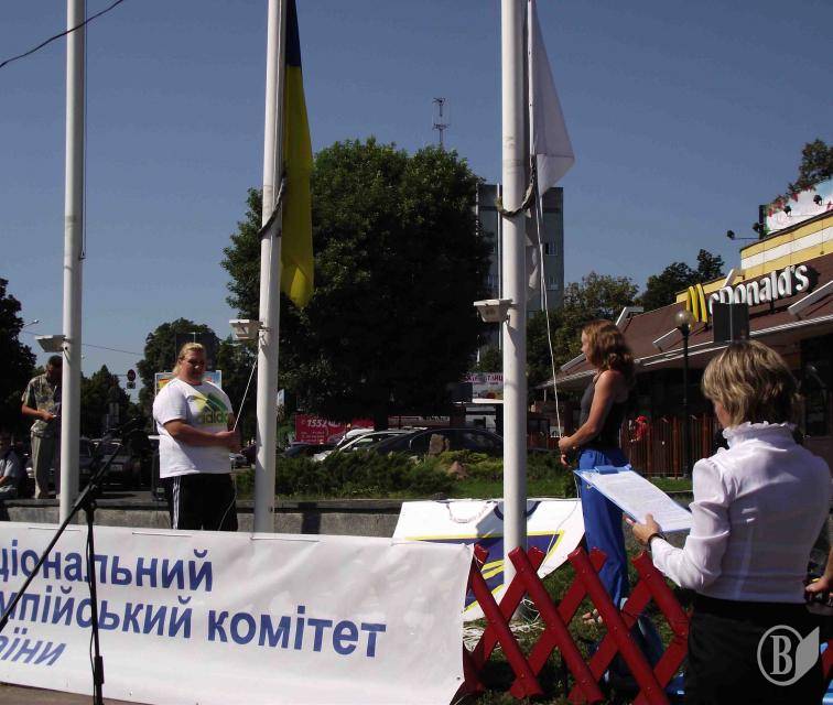 Організатори не затягували. Зачитали офіційне привітання голови Національного олімпійського комітету України Сергія Бубки. Привітали всіх і подивились як у небо здіймаються стяги. Тепер до прапору Макдональдс додався ще синьо-жовтий Прапор України та Олімпійський.