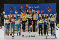 Наші юніорки (всі троє представниці чернігівщини), як і їхні молодші подруги по збірній, здобули «срібло». Юлія Бригинець, вихованка Заслужених тренерів України, сімейства О.В. і С.Л. Ворчаків, відпрацювала свій етап з одним додатковим патроном, передавши естафету шостою. Алла Гиленко, вихованка Заслужених тренерів України, сімейства М.М. і Ж.С. Зоців, на кожному вогневому рубежі шістьма пострілами закрила всі п'ять мішеней і фінішувала другою.