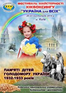 Відкритий Фестиваль Майстерності з кікбоксингу W.P.K.A. «Україна для Всіх» Пам’яті Дітей Голодомору України 1932 – 1933 років. проходив 20 – 23 листопада у Києві.