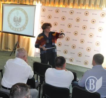 Спікери, яких було запрошено до слова, представили інформацію з історії клуба та Чернігівщини. «Нинішня емблема практично копіює емблему Латвійської федерації футболу. Історичні кольори «Десни» – біло-блакитні, на цьому й варто зосередити основну увагу», – висловив свою думку знавець історії чернігівського футболу Віктор Муха.