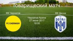 Завтра, 27 червня, футбольні клуби «Чернігів» і «Десна» зіграють товариський матч у Чернігові. Початок о 18 годині.