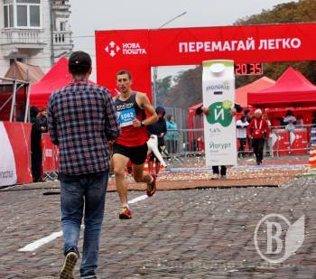 Усі раптом помітили чоловіка , який стартував через 30 секунд, а то й більше, після всіх. На знімку добре видно табло.