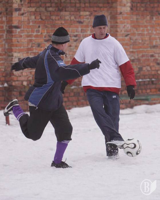 Пока господа-псевдоэлита дерутся, кому достанется"Десна", игроки выходят на пустое поле.