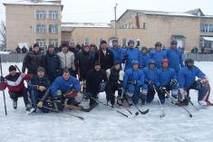 Наступним кроком в розвитку гри буде створення районної федерації хокею (на фото: учасники товариської гри з хокею між командами Борзни та Бахміча ).