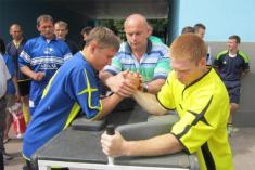 Першими розпочали та завершили свої змагання представники найбільш силового виду спорту освітянської Спартакіади — армреслінгу. Змагання проводились лише серед чоловіків у трьох вагових категоріях. Впевнену перемогу тут отримали представники Менської районної організації Профспілки. Далі з невеликим відривом один від одного в турнірній таблиці розташувалися освітяни м. Ніжина та Борзнянського району.