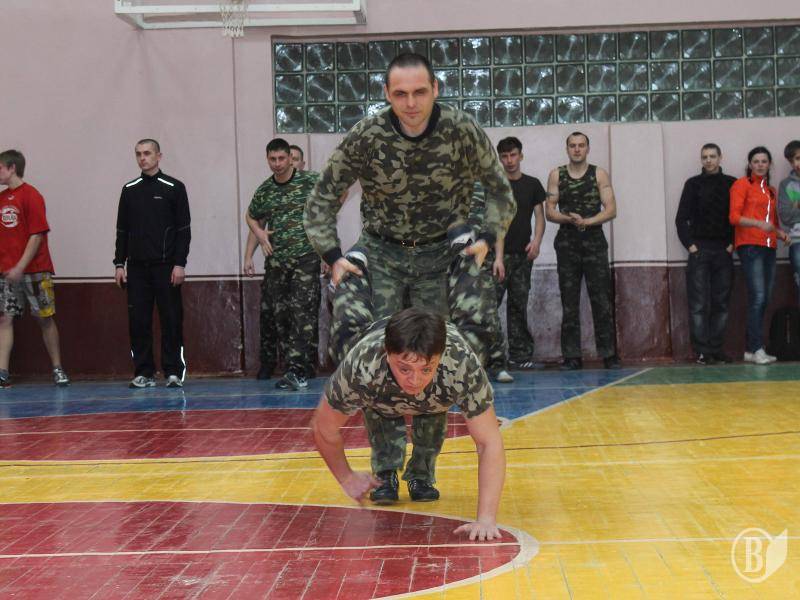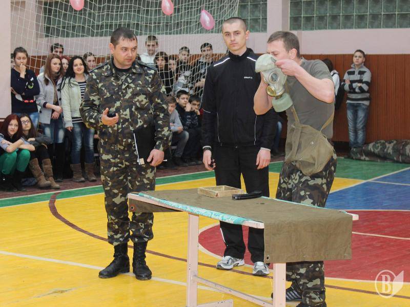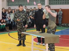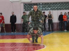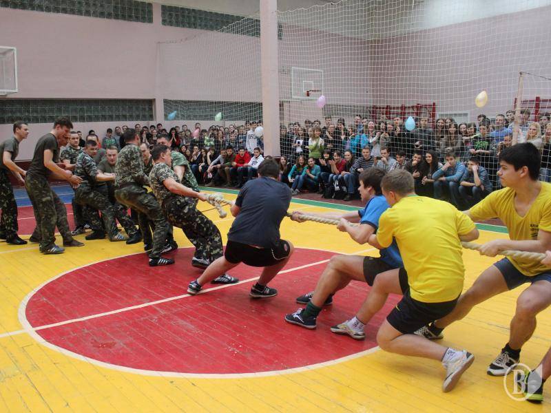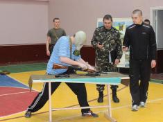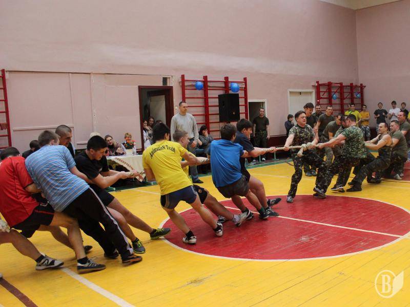 Всього в спортивних змаганнях взяли участь дві команди по десять учасників – від військових та школярів-старшокласників. Окрім традиційних – підтягування на перекладині, перетягування канату та спортивної естафети, учасники свята також змагались на швидкість розбирання та збирання автомату й спорядження магазину патронами..