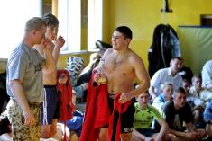 У змаганнях взяли участь початківці цього виду спорту. А титуловані спортсмени змагалися окремо - боролися за звання кращого самбіста без вагових категорій.