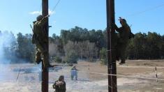 Всі вправи курсанти виконують під автоматичним вогнем, що ведуть інструктори, а на деяких ділянках - у диму. Військові долають стіни різних висот та підземні ходи, підіймаються на будівлі та "терикони", за допомогою мотузок стрибають через водяні рови, деруться на стовпи... Одного чекають усі - тягнуть і "поранених".