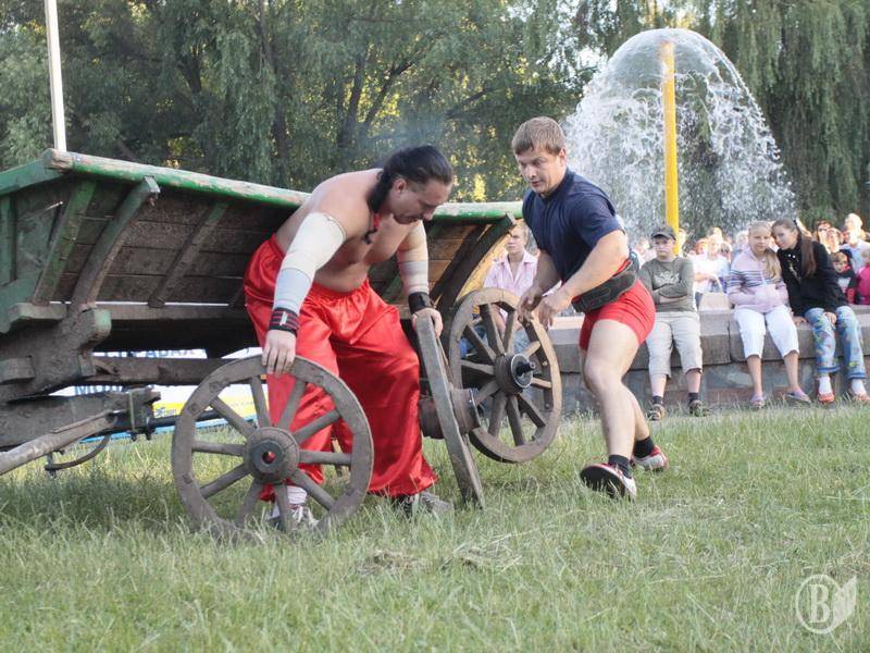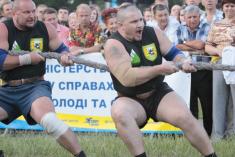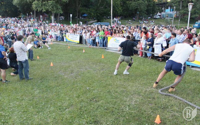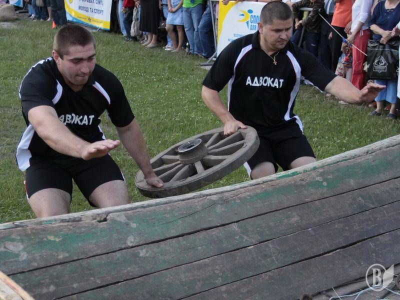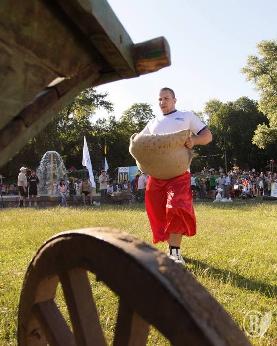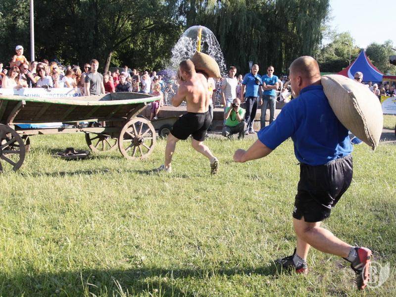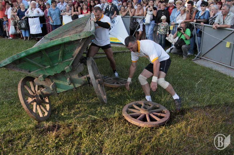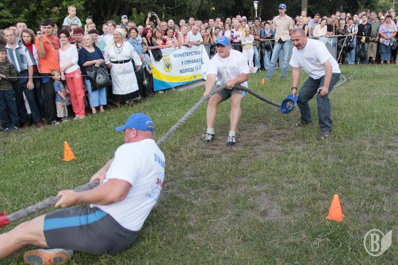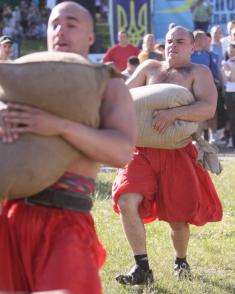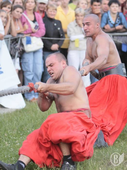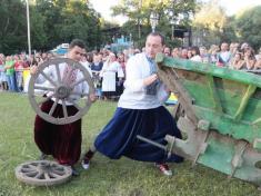Переможці фестивалю “Козацькі розваги” зі всіх регіонів України перекидали через височенну жердину 5-кілограмовий чобіт, піднімали 70-кілограмову колоду, на швидкість міняли колеса у возі, вантажили на віз мішки із «сіллю», перетягували линву.