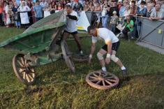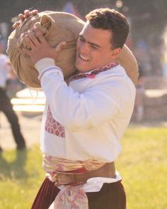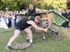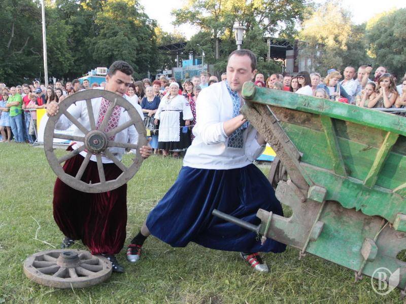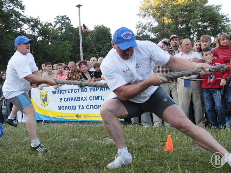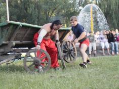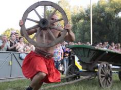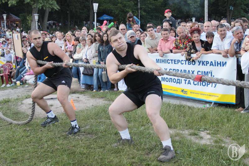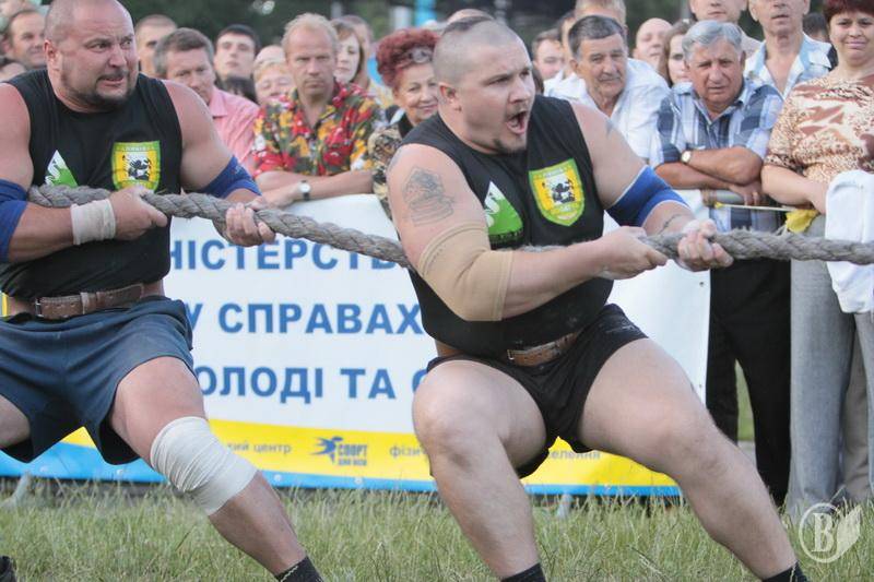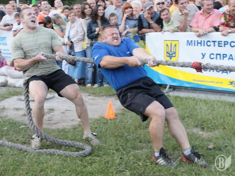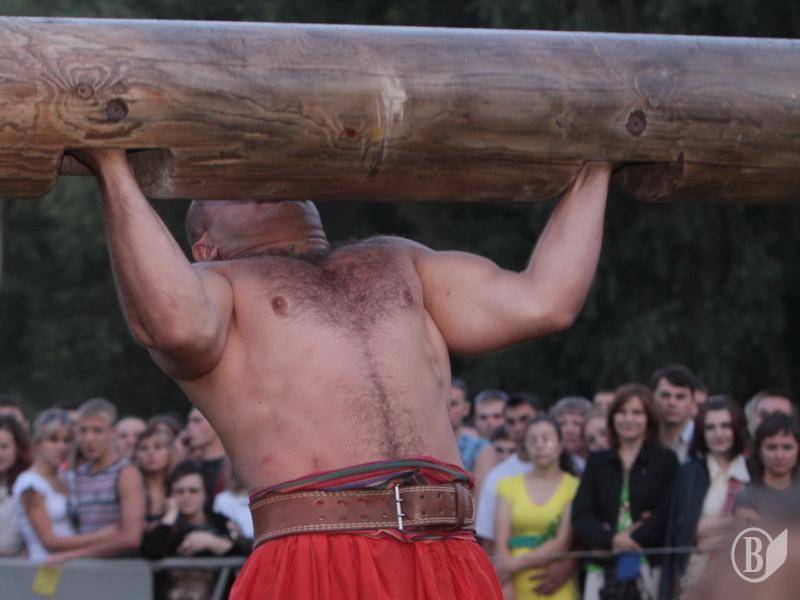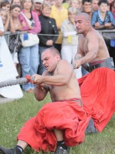 Переможці фестивалю “Козацькі розваги” зі всіх регіонів України перекидали через височенну жердину 5-кілограмовий чобіт, піднімали 70-кілограмову колоду, на швидкість міняли колеса у возі, вантажили на віз мішки із «сіллю», перетягували линву.