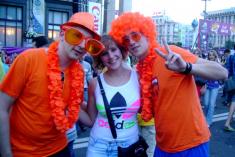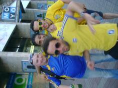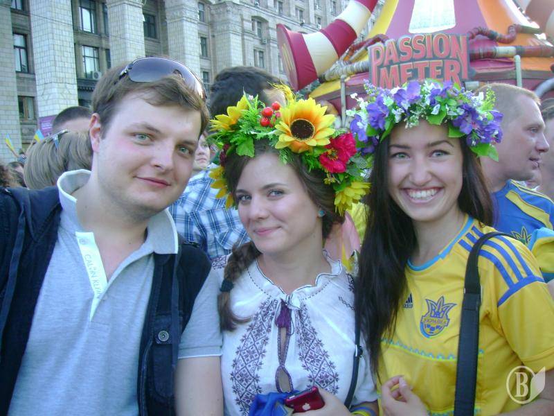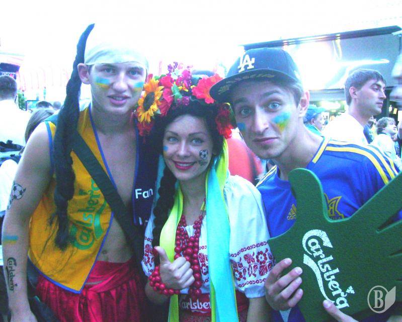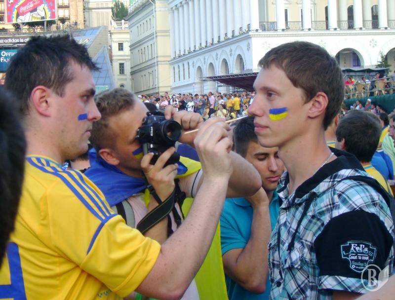 Одразу ж зустрічаю на тротуарі по дорозі в бік Майдану групу вболівальників-шведів, вдягнутих у футболки їхньої національної збірної. З ними український вболівальник у формі нашої команди, англійською пояснює шведам, як пройти у фан-зону.