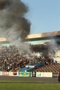 Перед кубковою грою чернігівські та дніпропетровські ультрас пройшли спільним маршем за єдину Україну. Попри дорогі ціни на квитки, стадіон був заповнений більше, ніж на половину.