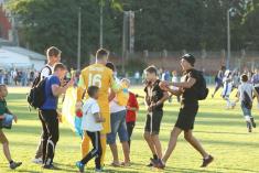 У першому таймі замість того, аби спостерігати футбол, хлопці постійно роздавали автографи та фотографувалися з усіма охочими. Не витримавши такої прискіпливої уваги, на другий тайм футболісти «Дніпра» вирішили не повертатися на трибуни, а спостерігати гру біля підтрибунного приміщення. Та найбільше уваги було приділено капітану дніпрян — Руслану Ротаню.