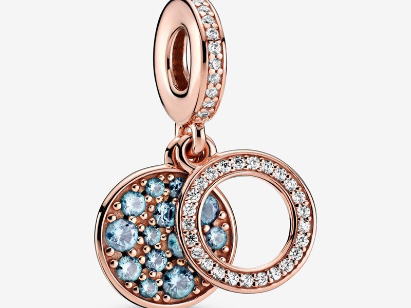 Яркими пополнениями среди подвесок в нескольких коллекциях являются большие цветные диски. Шарм-подвеска выполнена из подвижной части и двойного диска. Один полностью усеян камнями кубического циркония, другой с пустой серединкой в виде буквы “О”. Последний также усеян камнями циркония прозрачного цвета и накрывает первый. Серия подвесок-дисков отличается напылением золота и цветом камней.