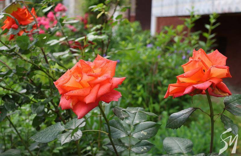 У сусідів по палісаднику - теж квітнуть троянди. Але у пана Миколи аж 7 сортів. Принаймні стільки вдалося помітити і нарахувати. Дякуємо вам за квіти, за те, що плекаєте красу, добрий чоловіче.