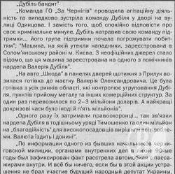 - Інформація, яку розповсюджував Глаба у Чернігові проти Валерія Дубіля під час виборчих перегонів минулого року – це суцільний наклеп. Це підтвердив суд трьох інстанцій, - прокоментував помічник-консультант народного депутата В. Дубіля Микола Миргородський. – Ми задоволені таким рішенням. Це вкотре доводить, що в нашій країні працює Конституція, що кожна людина має право захистити честь, гідність і ділову репутацію. І Валерій Дубіль і його команда абсолютно нормально сприймають обгрунтовану критику, бо вона ознака цивілізованого суспільства. Одразу після виборів Валерій Дубіль публічно заявив про те, що не тримає образи на людей, які поливали його брудом. Та покласти край цим звинуваченням мав суд, аби це стало наукою для людей, для яких подібні методи стали нормою життя.
