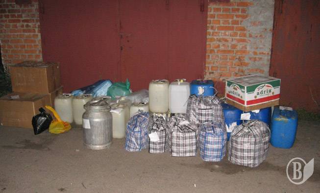 У ході проведення санкціонованих обшуків за місцем проживання та в орендованому ними гаражі було виявлено та вилучено пристрій для закупорювання пляшок, 1200 пляшок готового фальсифікату, близько тисячі марок акцизного збору, 400 дозаторів, 2900 штук металевих закруток, 300 літрів готової до розливу рідини, пристрій для очистки спиртової суміші.