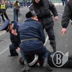 Один из милиционеров согласно Закона Украины „О милиции" применил к дебоширу приёмы рукопашного боя, выбив предмет из рук. В это время к милиционеру сзади подбежали двое неизвестных, которые сбили его с ног и начали бить ногами по туловищу и голове. Одновременно с этим злоумышленник в маске стал препятствовать другому милиционеру, который попробовал помочь своему напарнику. Таким образом, этому патрульному тоже были нанесены телесные повреждения.