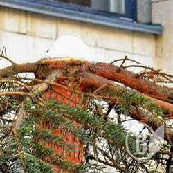 Це була красуня 15-метрової висоти (десь з 5-поверховий будинок). Справжня, не зліплена з гілок. Її подарувала райцентру одна з місцевих організацій, на подвір`ї якої проводилося планове прорідження ялинової алеї. І ось вранці 31-го грудня ошелешені люди побачили цю ялинку поваленою на асфальт.