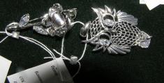 Названия украшений говорят сами за себя: перстни „Крокус”, „Цветы”, „Юнона”, „Петуния”, браслет „Роза”, подвеска „Перина”, серёжки „Ирис” и другие.