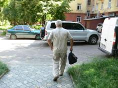 На фото: Юрисконсульт Рутковський біля офісу "Високого Валу", куди прийшов за власним бажанням, заперечує проти свого фотографування на пам"ять.
