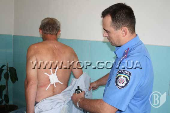 Забігши до оселі, необачний помічник оторопів від побаченого, адже його кум, розмахуючи сокирою, рубав свою дружину та куму. Коли ж він спробував втрутитись в бійню, то отримав від кума удар сокирою по спині та руці.