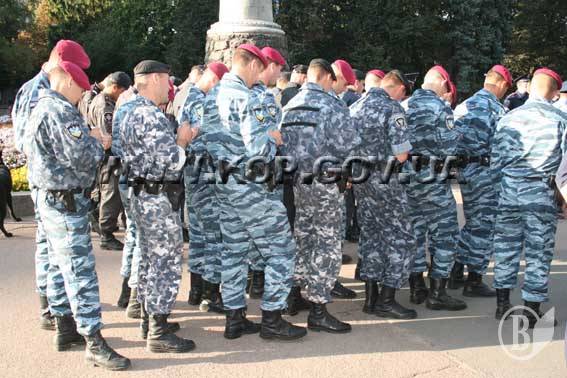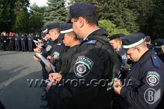 У п'ятницю напроти Чернігівського міськвідділу внутрішніх справ біля пам'ятника Богдану Хмельницькому більш ніж двісті співробітників міліції були проінструктовані перед виходом на службу керівництвом обласного управління та міського відділу. Після інструктажу міліціонери вирушили на маршрути нести службу з охорони громадського порядку.