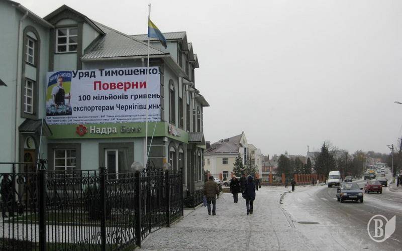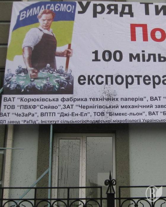 Поэтому нежинская просвестительно-производственная коммерческая фирма «Сяйво» выставила бигборды в Нежине и на трассе Чернигов-Киев около села Скибин, с текстом –«Уряд Тимошенко – верни 100 миллионов гривен экспортерам Черниговщины!».