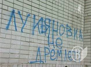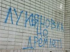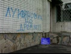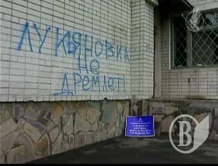 Стіни будівлі міського управління ЖКГ вранці 8 листопада виявилися обмальованими, зокрема, незрозумілим написом «Лукьяновка не дремлет», а вивіска управління була зламаною та валялася на асфальті.