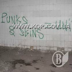 Непосредственно же на месте события, куда выехала следственно-оперативная группа Черниговского городского отдела, на стене дома стражи порядка зафиксировали надписи зеленой краской: «Анархия. Братство. Единство», «FASHISM-ZOMBIE", "PUNKS Scins=unite", которые сделали задержанные.
