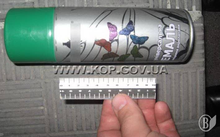 При осмотре на месте события у ребят был изъят аэрозольный баллончик с зеленой краской.
